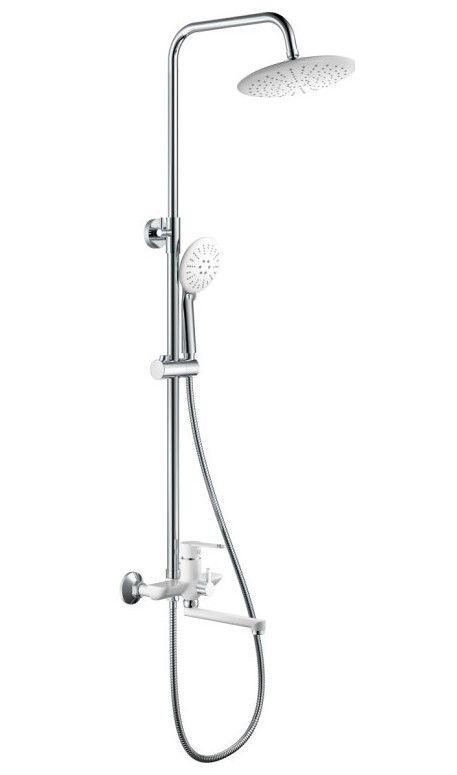 Душевая система Haiba.Изготовлена из высококачественной латуни.Прекрасный тропический душ.Излив для наполнения ванны.Душевая штанга регулируется по высоте от 68,8 см до 125,4 см.