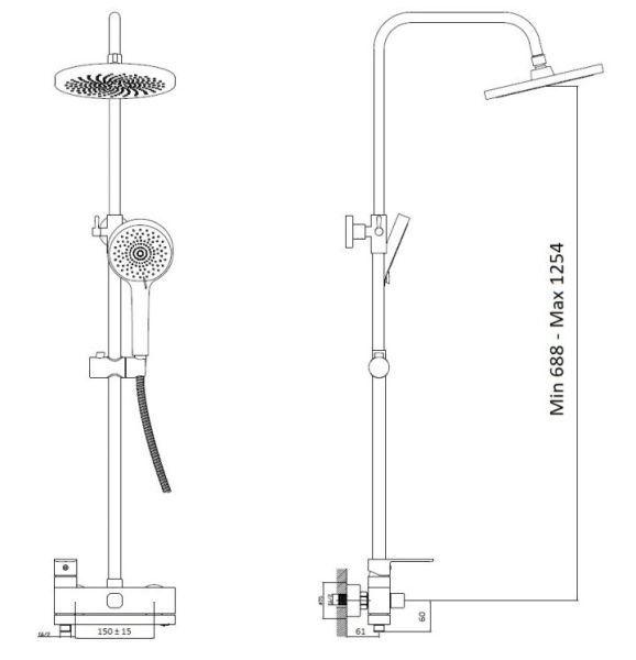 Душевая система Haiba.Изготовлена из высококачественной латуни.Прекрасный тропический душ.Излив для наполнения ванны.Душевая штанга регулируется по высоте от 69 см до 125 см.