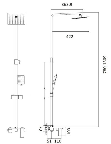 Душевая система Haiba.Изготовлена из высококачественной латуни.Прекрасный тропический душ.Излив для наполнения ванны.Душевая штанга регулируется по высоте от 78 см до 130,9 см.