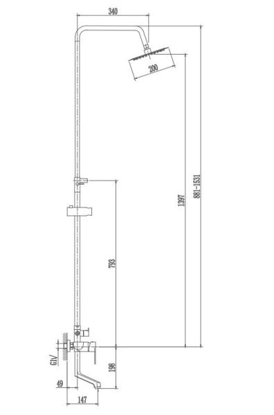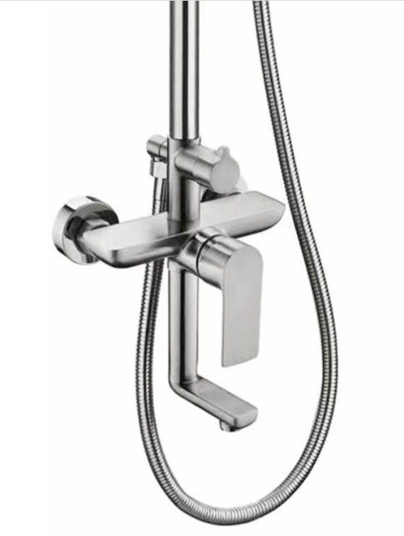 Душевая система Haiba.Изготовлена из высококачественной нержавеющей стали.Прекрасный тропический душ.Излив для наполнения ванны.Душевая штанга регулируется по высоте от 88,1 см до 153,1 см.