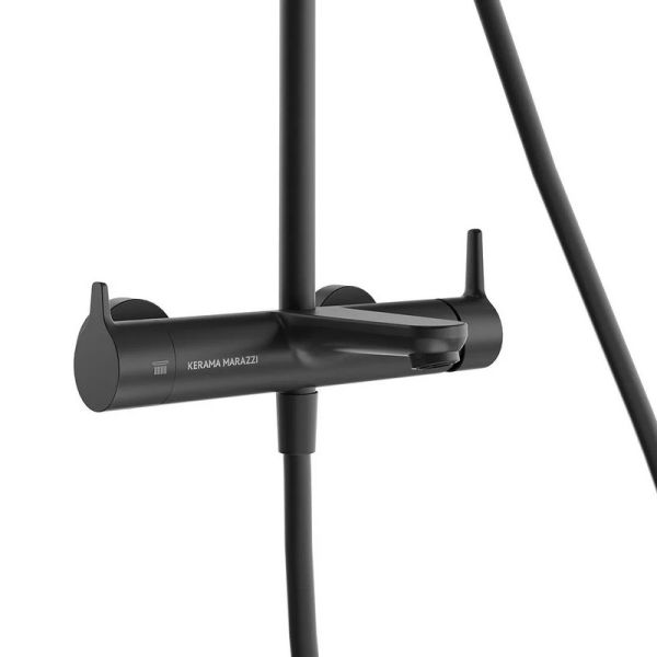 Душевая стойка Kerama Marazzi Fonte FO.201.KM.BLK.M на три потока с фиксированным изливом и механическим смесителем чёрный матовый купить