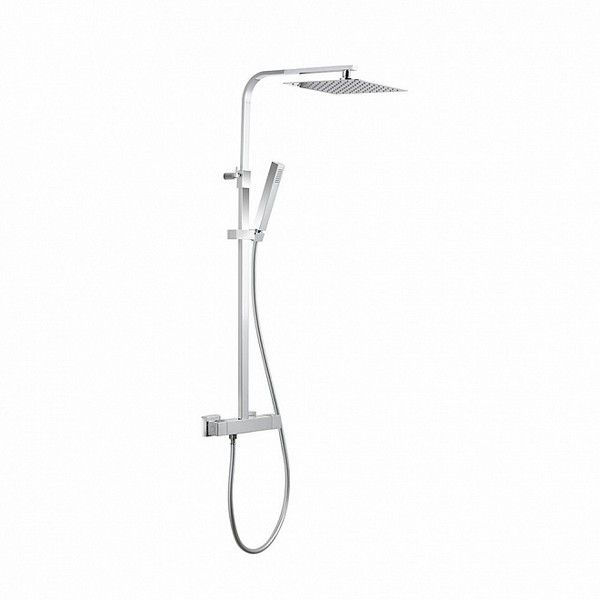 Душевая колонна с термостатическим смесителем в комплекте с переключателем потоков, квадратной верхней одноструйной душевой лейкой из нержавеющей стали, с ручным душем и шлангом из ПВХ