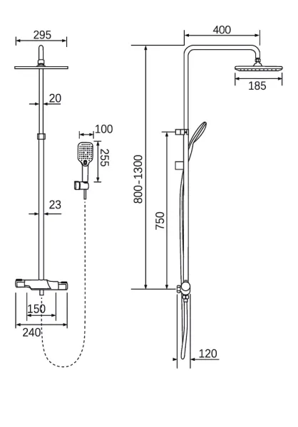 * верх.диск 295х185 мм, моб.лейка 3 режима;
