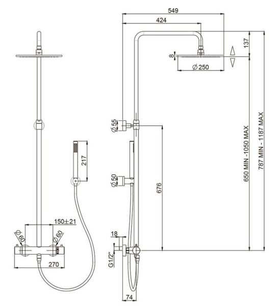Размер верхнего душа, см:25