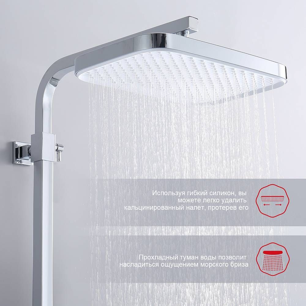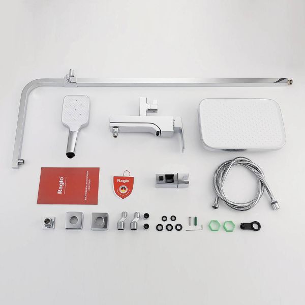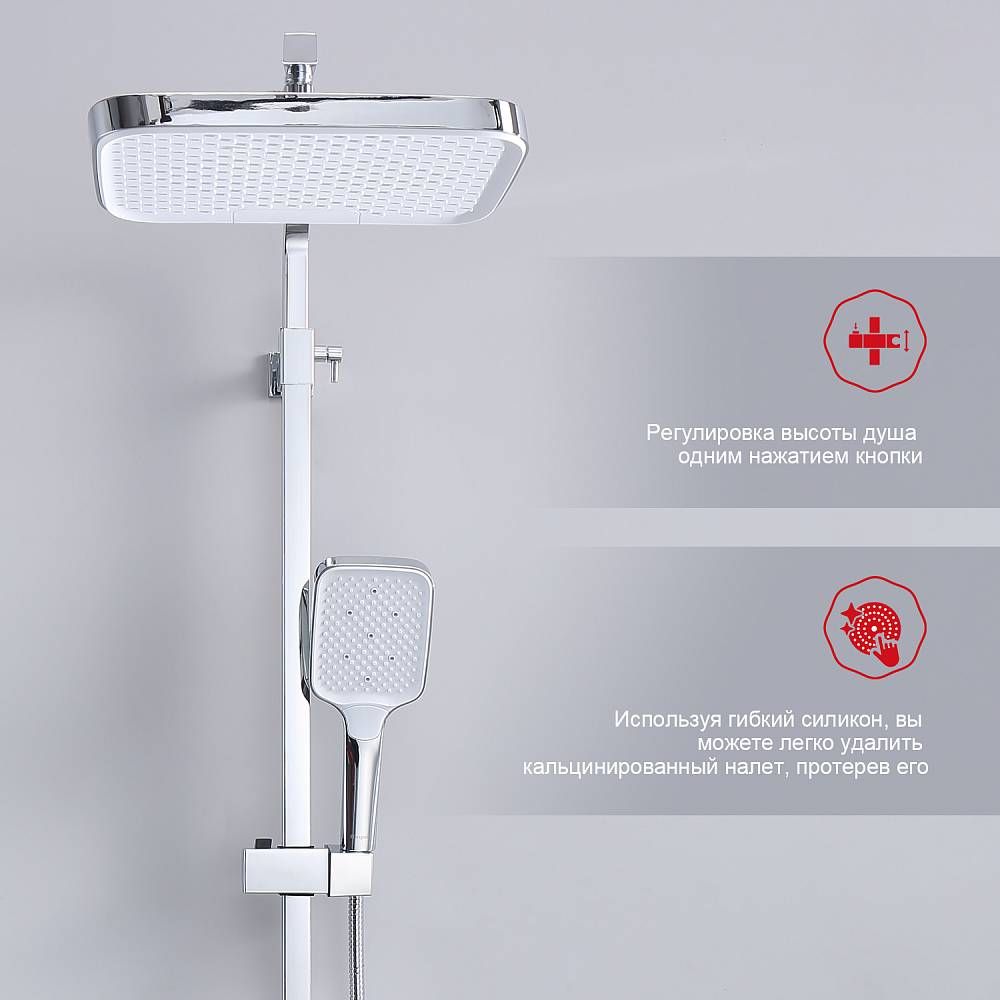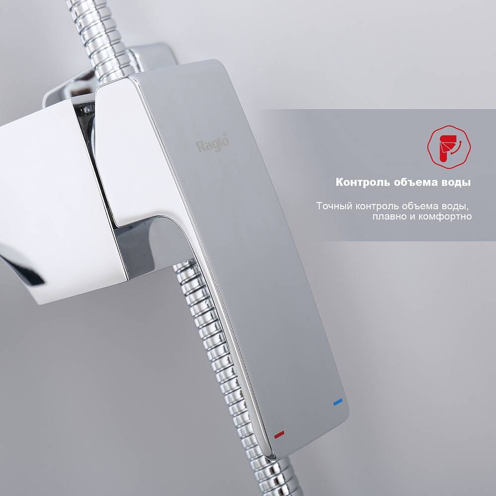 Душевая система Raglo R02.24.Цвет: хром.Материал: латунь.Управление: однорычажное.Механизм: керамический картридж.Излив: поворотный. Аэратор.Тип излива: каскадный.Регулируемая по высоте душевая штанга: 1082-1650 мм.Форма верхнего душа: прямоугольная.Размер верхнего душа (ШхД): 315х208 мм.Регулируемый по высоте и наклону держатель ручного душа.Форма ручного душа: прямоугольная.Количество режимов струи ручного душа: 3.Отверстия для монтажа: 3.Стандарт подводки: G 1/2.Монтаж: на стену.