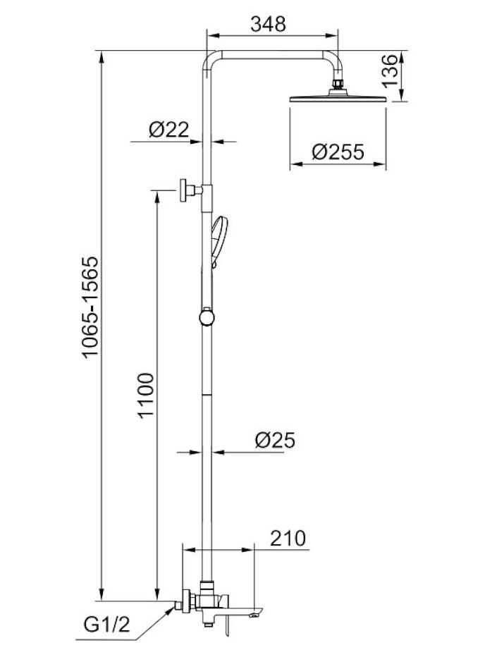 Душевая система Raglo R03.24.Цвет: хром.Материал: латунь.Управление: однорычажное.Механизм: керамический картридж.Излив: поворотный. Аэратор.Регулируемая по высоте душевая штанга: 1065-1565 мм.Форма верхнего душа: круглая.Диаметр верхнего душа: 255 мм.Регулируемый по высоте и наклону держатель ручного душа.Форма ручного душа: круглая.Количество режимов струи ручного душа: 3.Отверстия для монтажа: 3.Стандарт подводки: G 1/2.Монтаж: на стену.