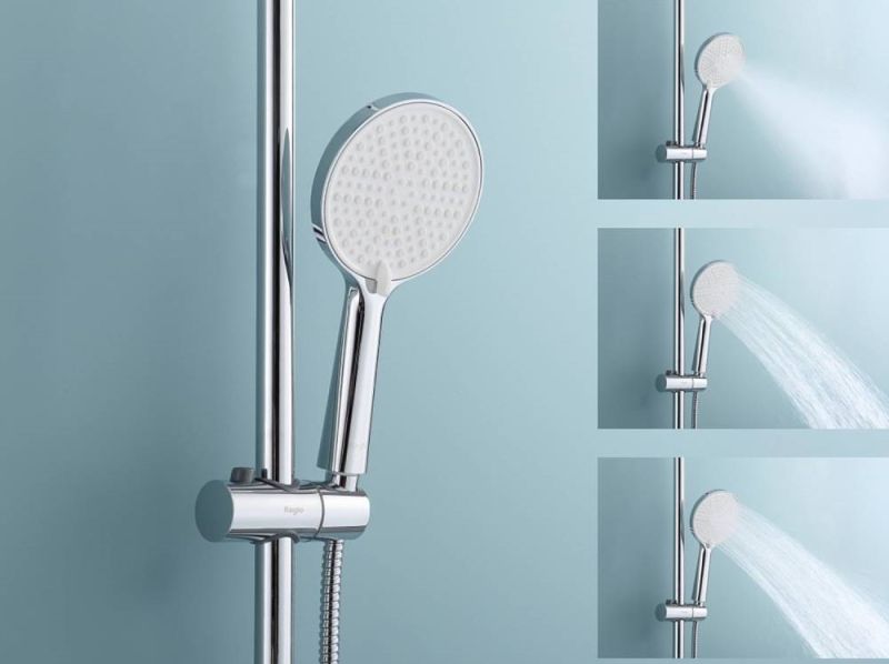 Душевая система Raglo R20.24.Цвет: хром.Материал: латунь.Управление: однорычажное.Механизм: керамический картридж.Излив: поворотный. Аэратор.Регулируемая по высоте душевая штанга: 1130-1480 мм.Форма верхнего душа: круглая.Диаметр верхнего душа: 250 мм.Регулируемый по высоте и наклону держатель ручного душа.Форма ручного душа: круглая.Количество режимов струи ручного душа: 3.Отверстия для монтажа: 3.Стандарт подводки: G 1/2.Монтаж: на стену.
