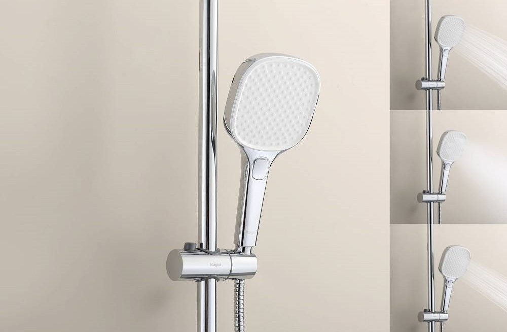 Душевая система Raglo R22.26 с термостатом.Материал: латунь. Управление: термостат.Механизм: термостатический картридж.Излив: поворотный.Тип излива: каскадный. Аэратор.Ограничение температуры при 38 градусов.Регулируемая по высоте душевая штанга: 1130-1480 мм.Форма верхнего душа: прямоугольная.Размер верхнего душа (ШхД): 322х212 мм.Регулируемый по высоте держатель ручного душа.Форма ручного душа: прямоугольная.Количество режимов струи ручного душа: 3.Отверстия для монтажа: 3.Стандарт подводки: G 1/2.Монтаж: на стену.