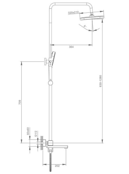Душевая система Raglo R30.24.03.Материал: латунь.Управление: однорычажное.Механизм: керамический картридж.Излив: поворотный. Аэратор.Регулируемая по высоте душевая штанга: 630-1280 мм.Форма верхнего душа: прямоугольная.Размер верхнего душа (ШхД): 320х210 мм.Регулируемый по высоте и наклону держатель ручного душа.Высота ручного душа: 247 мм.Количество режимов струи ручного душа: 3.Отверстия для монтажа: 3.Стандарт подводки: G 1/2.Монтаж: на стену.