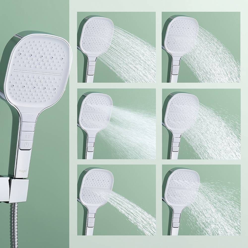 Душевая система Raglo R51.24.Материал: латунь.Управление: однорычажное.Механизм: керамический картридж.Излив: поворотный. Аэратор.Регулируемая по высоте душевая штанга: 1087-1655 мм.Форма верхнего душа: прямоугольная.Размер верхнего душа (ШхД): 330х220 мм.Регулируемый по высоте и наклону держатель ручного душа.Количество режимов струи ручного душа: 4.Отверстия для монтажа: 3.Стандарт подводки: G 1/2.Монтаж: на стену.