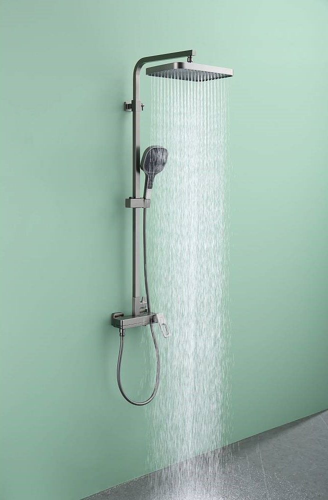 Душевая система Raglo R51.24.09Материал: латунь.Управление: однорычажное.Механизм: керамический картридж.Излив: поворотный. Аэратор.Регулируемая по высоте душевая штанга: 1087-1655 мм.Форма верхнего душа: прямоугольная.Размер верхнего душа (ШхД): 330х220 мм.Регулируемый по высоте и наклону держатель ручного душа.Количество режимов струи ручного душа: 4.Отверстия для монтажа: 3.Стандарт подводки: G 1/2.Монтаж: на стену.