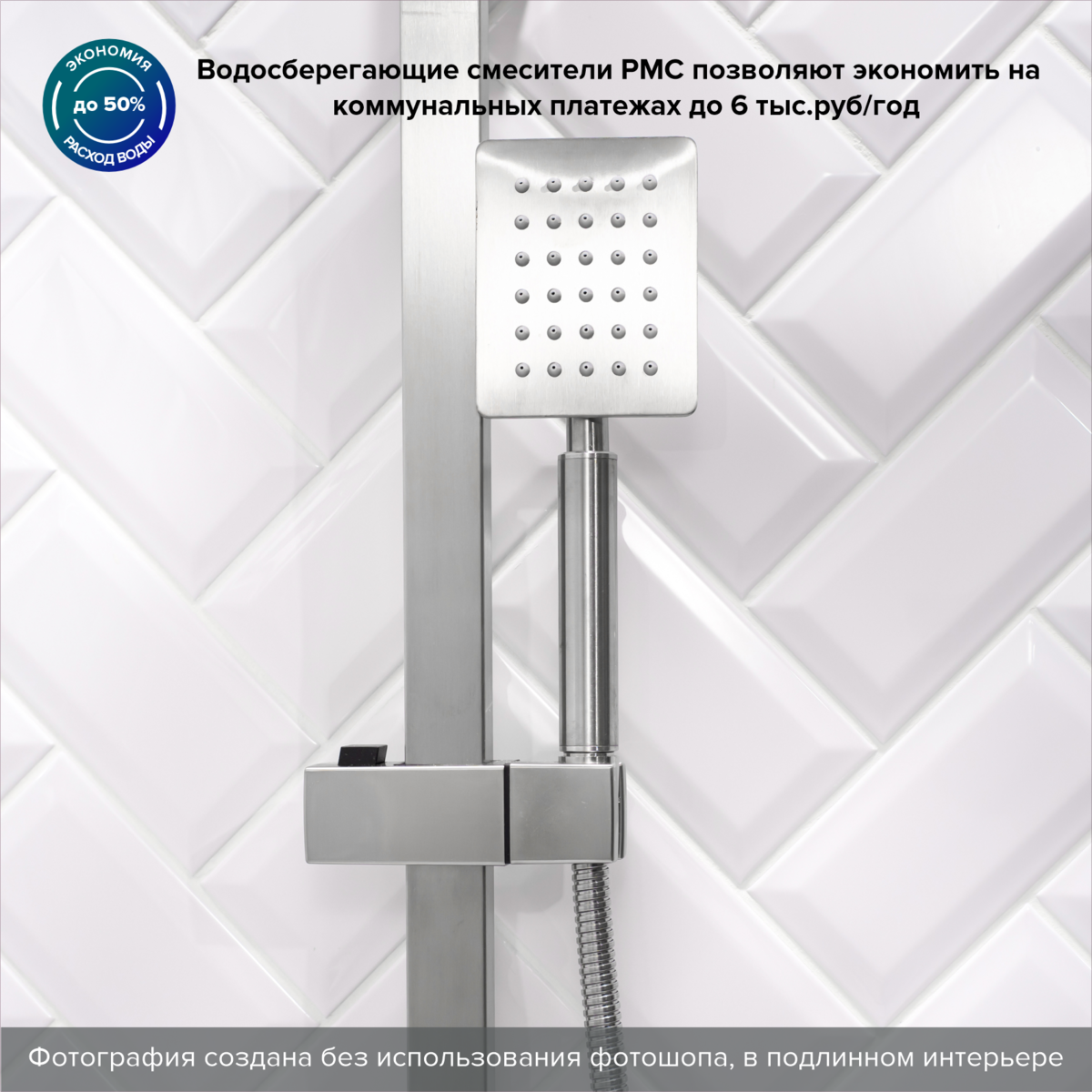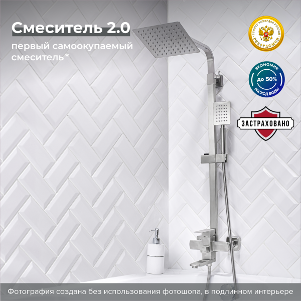 В комплекте шланг для душа, лейка для душа 1,5 м металлическая стойка, эксцентрики, отражатели, 1 режим на душевой лейке