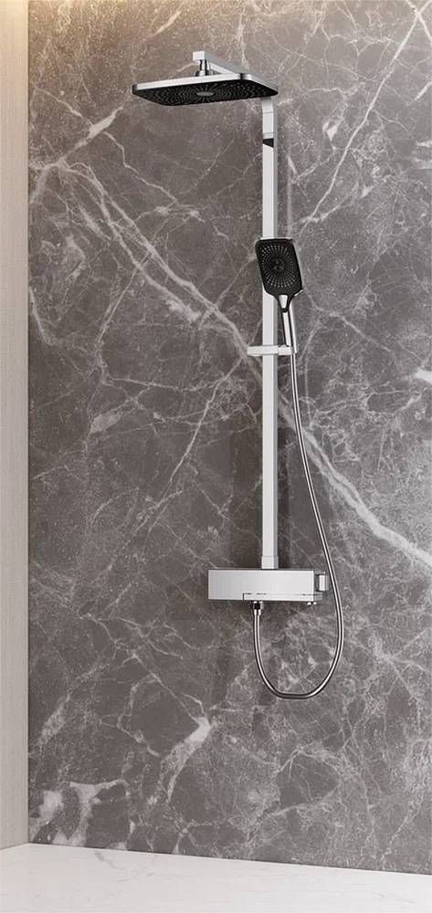 Душевая система с термостатом Rose R1096, хром.Монтаж: настенный.Стилистика дизайна: современный стиль.Управление: термостат.Размер верхнего душа: 30x19.Форма верхнего душа: прямоугольная.