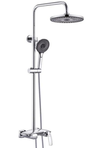 Душевая система с каскадным изливом Rose R1136, хром.Монтаж: настенный.Стилистика дизайна: современный стиль.Управление: рычажное.Размер верхнего душа: 25x25.Форма верхнего душа: круглая.