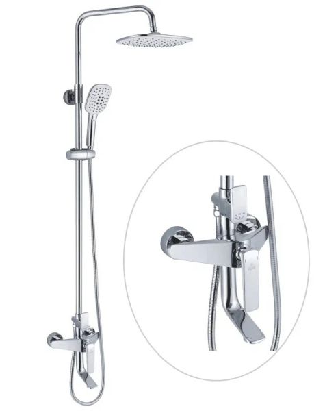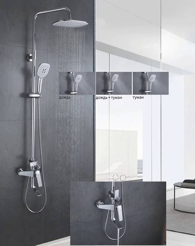 Душевая система Rose R1336, белый/хром.Монтаж: настенный.Стилистика дизайна: современный стиль.Управление: рычажное.Размер верхнего душа: 26x20.Форма верхнего душа: прямоугольная.