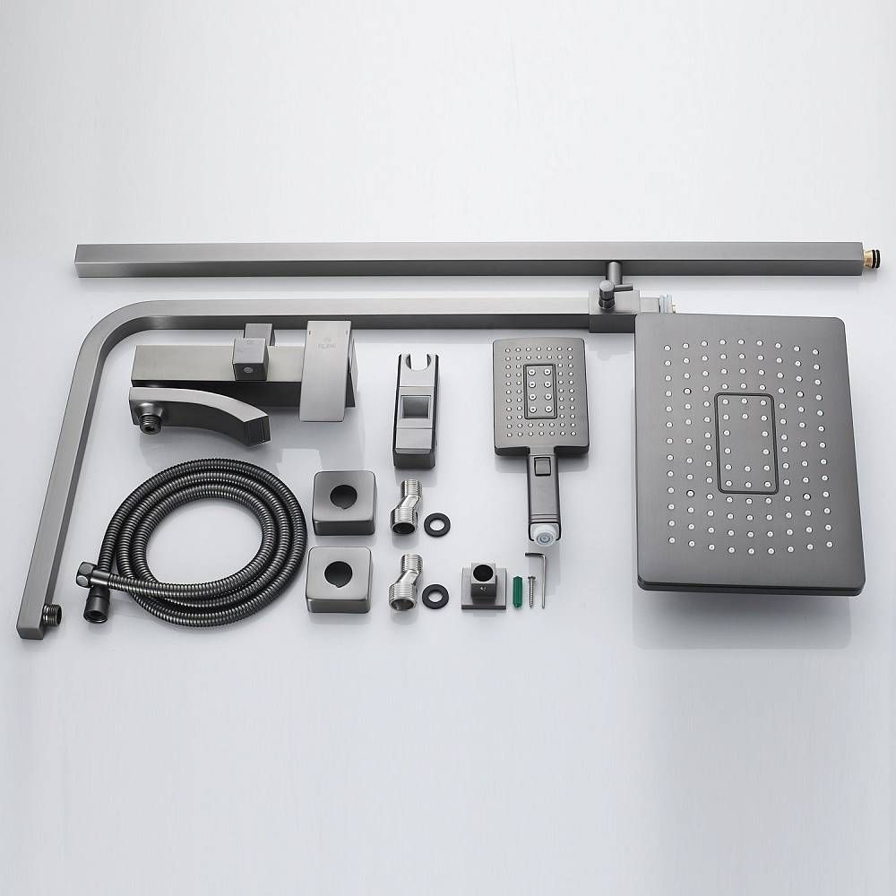 Душевая система Rose R1556T, пепельный.Монтаж: настенный.Стилистика дизайна: современный стиль.Управление: рычажное.Размер верхнего душа: 30x20.Форма верхнего душа: прямоугольная.
