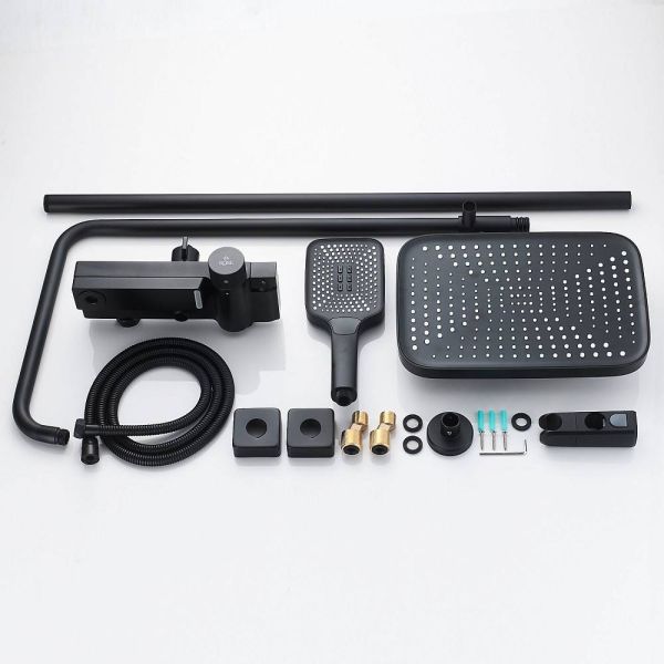 Душевая система с термостатом Rose R1896H, черный.Монтаж: настенный.Стилистика дизайна: современный стиль.Управление: термостат.Размер верхнего душа: 31,5x21.Форма верхнего душа: прямоугольная.