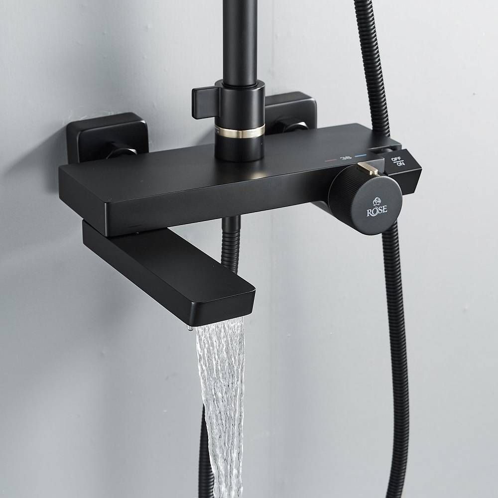 Душевая стойка Rose R1896H с термостатом чёрный матовый купить