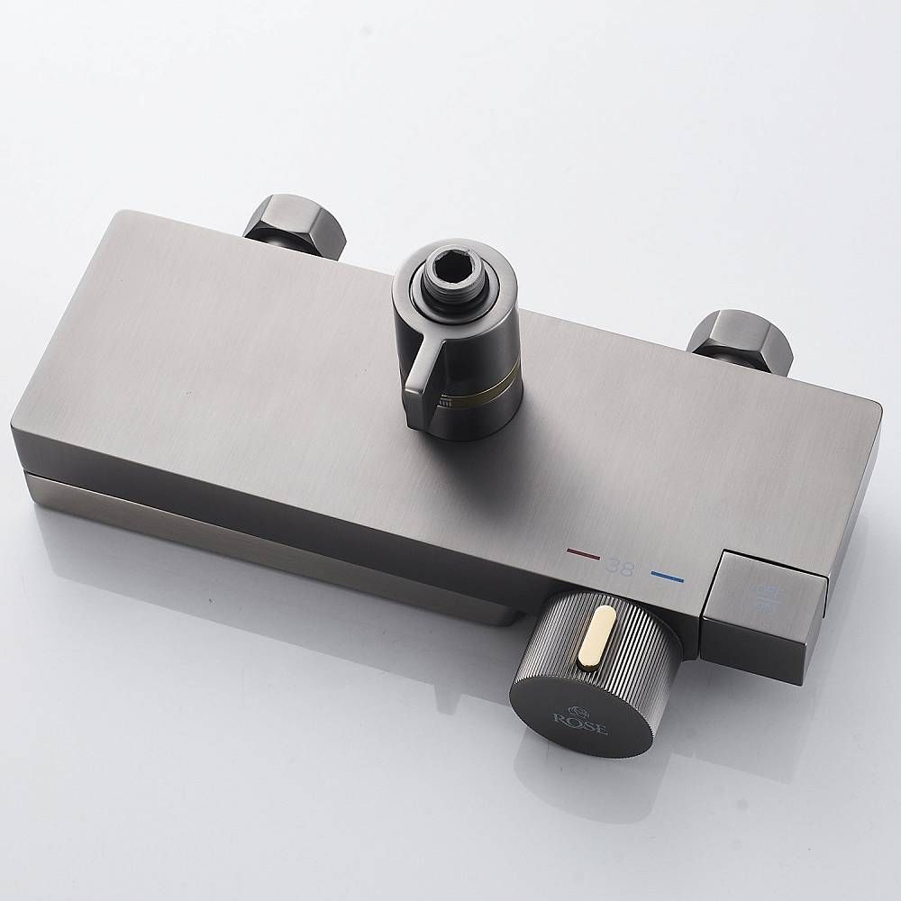 Душевая система с термостатом Rose R1896T, пепельный.Монтаж: настенный.Стилистика дизайна: современный стиль.Управление: термостат.Размер верхнего душа: 31,5x21.Форма верхнего душа: прямоугольная.