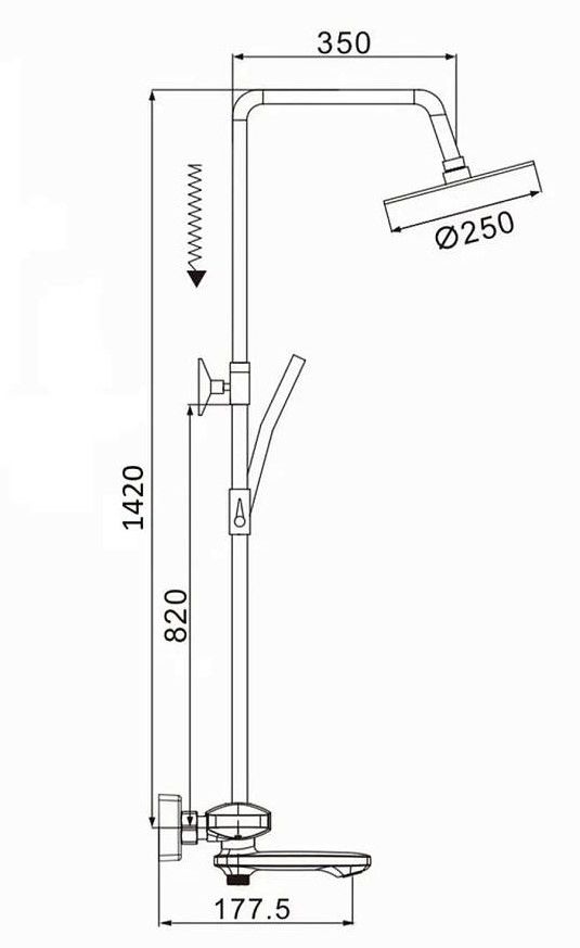 Душевая система с термостатом Rose R3996H, черный.Монтаж: настенный.Стилистика дизайна: современный стиль.Управление: термостат.Размер верхнего душа: 25x25.Форма верхнего душа: круглая.