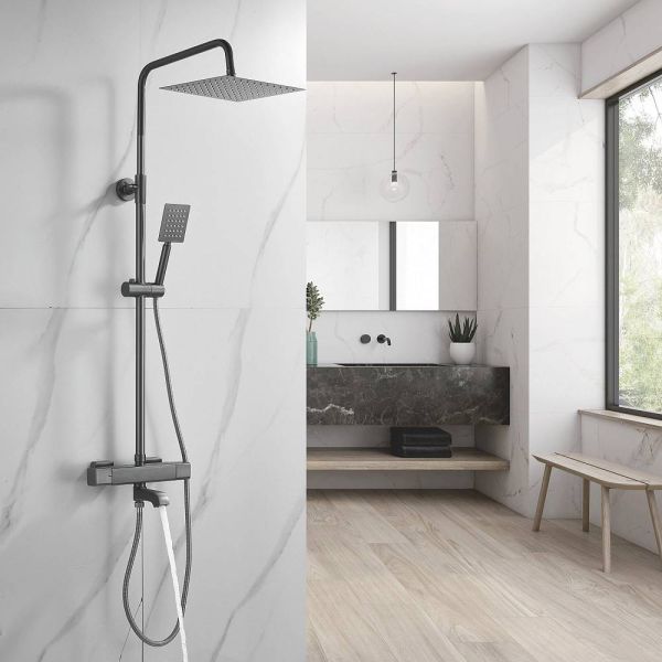 Душевая стойка с термостатом Shevanik S3096T оружейная сталь купить
