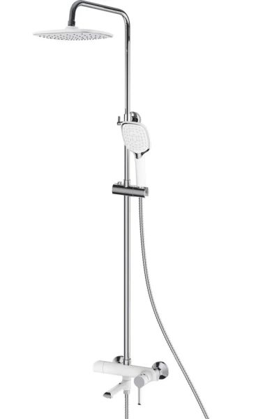 Душевая система Shevanik S6036F, белый/хром.Количество режимов струи: 1.Размер верхнего душа: 25,5x19 см.Управление: рычажное.Излив для наполнения ванны: да.