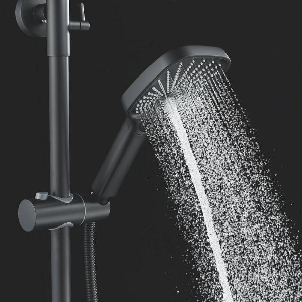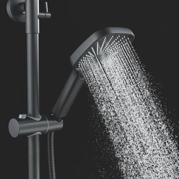 Ручной душ с 3 режимами работы также изготовлен из качественного ABS-пластика, регулируется по высоте и наклону для оптимального комфорта использования.