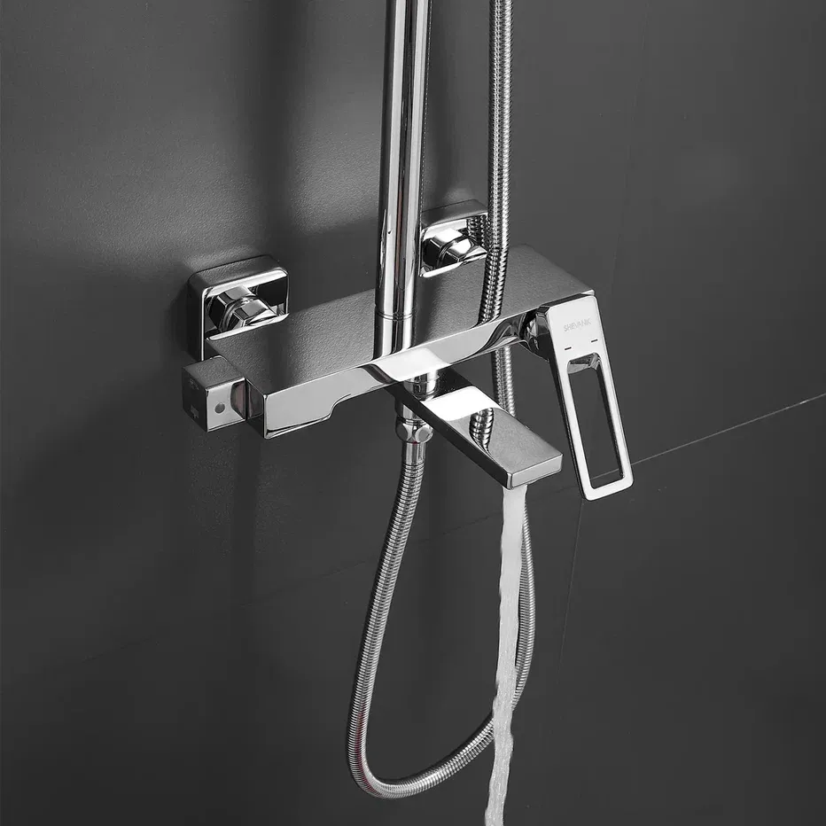 Душевая система Shevanik S6836, хром.Количество режимов струи: 3.Размер верхнего душа: 31x21,5 см.Управление: рычажное.Излив для наполнения ванны: да.