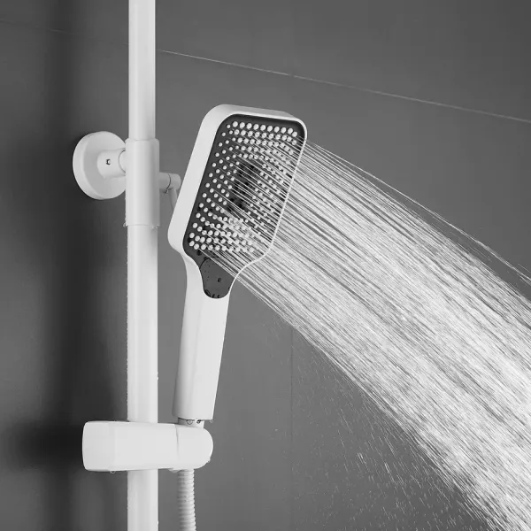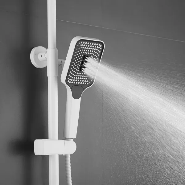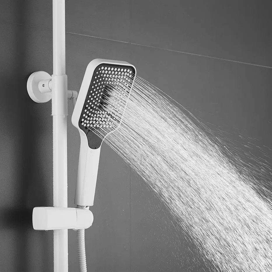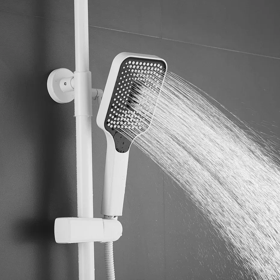 Душевая система Shevanik S6836C, белый.Количество режимов струи: 3.Размер верхнего душа: 31x21,5 см.Управление: рычажное.Излив для наполнения ванны: да.
