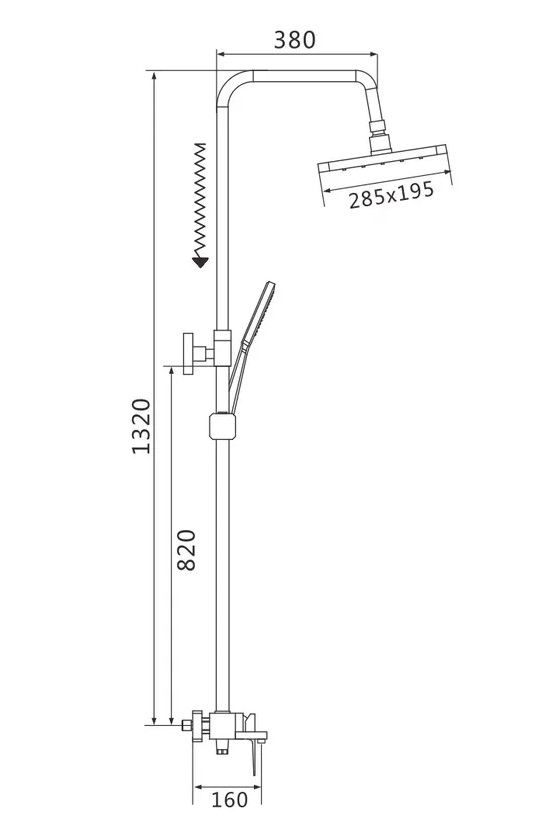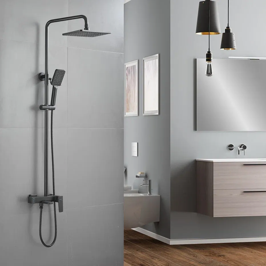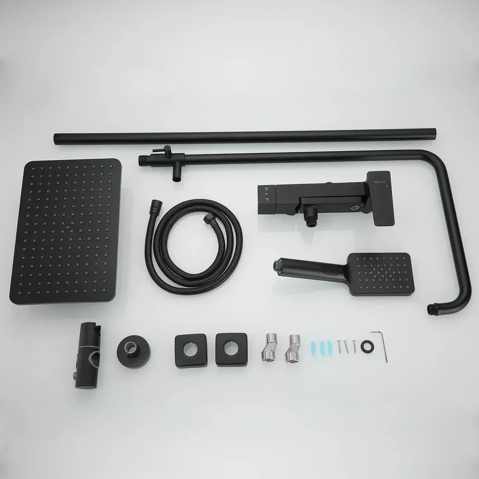 Душевая система Shevanik S8936H, черный.Количество режимов струи: 3.Размер верхнего душа: 28,5x19,5 см.Управление: рычажное.Излив для наполнения ванны: да.