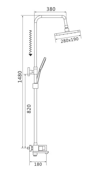 Душевая система Shevanik S9036, хром.Количество режимов струи: 3.Размер верхнего душа: 28x19 см.Управление: рычажное.Излив для наполнения ванны: да.