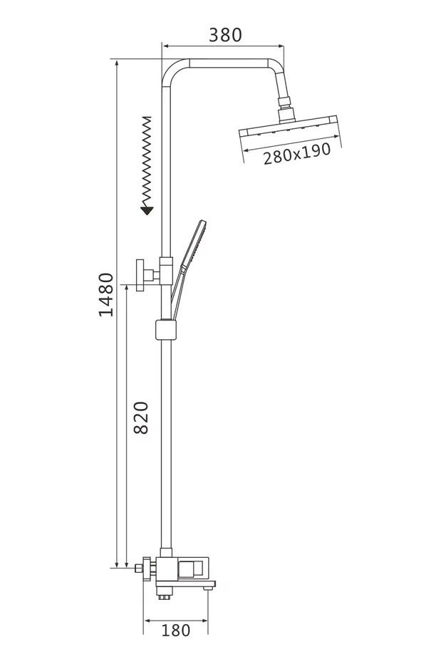 Душевая система Shevanik S9036H, черный.Количество режимов струи: 3.Размер верхнего душа: 28x19 см.Управление: рычажное.Излив для наполнения ванны: да.