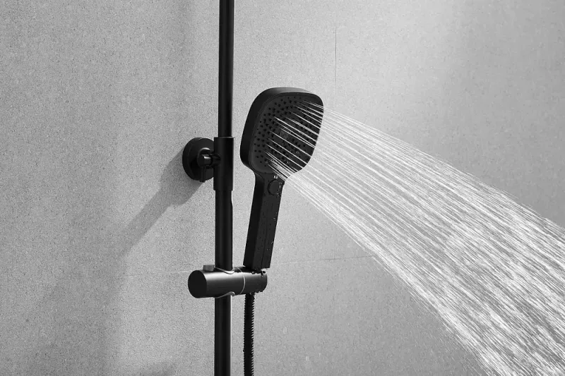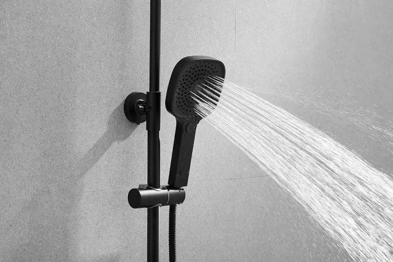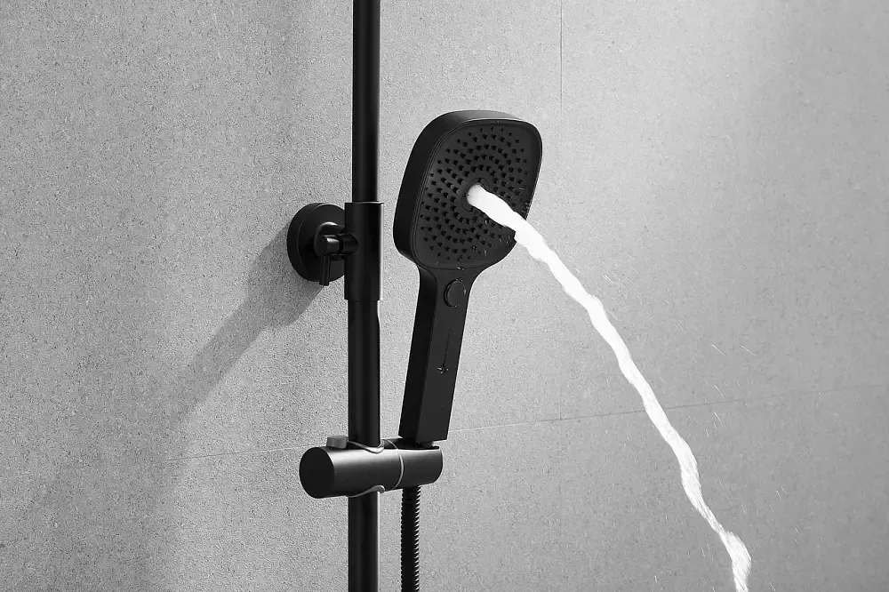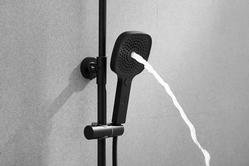 Душевая система Shevanik S9736H, черный.Количество режимов струи: 3.Размер верхнего душа: 22,5x22,5 см.Управление: рычажное.Излив для наполнения ванны: да.