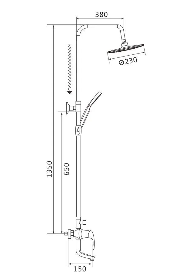 Душевая система Shevanik S9836F, белый/хром.Количество режимов струи: 3.Размер верхнего душа: 23x23 см.Управление: рычажное.Излив для наполнения ванны: да.