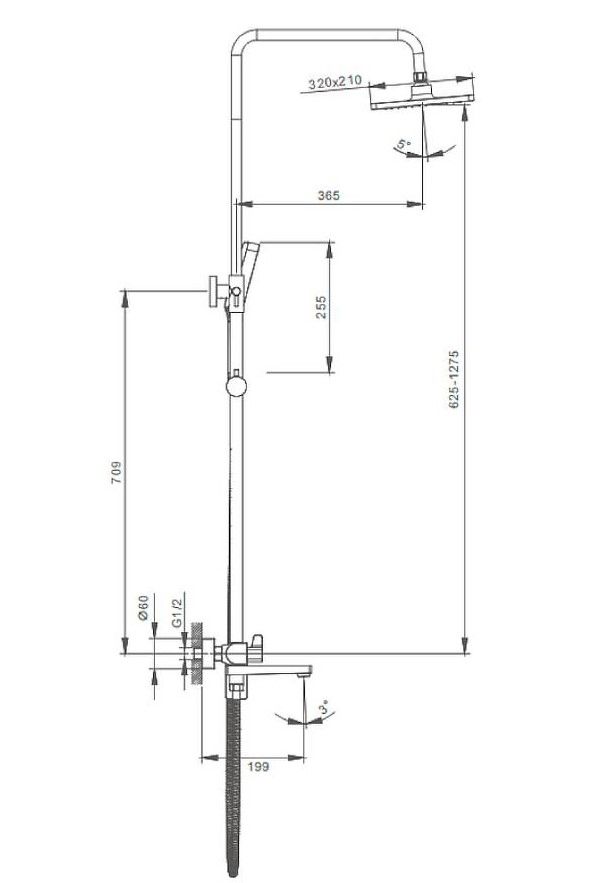 Душевая система Splenka S02.24. Цвет: хром. Материал: латунь. Управление: однорычажное. Механизм: керамический картридж. Излив: поворотный. Аэратор. Стандарт подводки: G 1/2. Форма верхнего душа: прямоугольная. Размер верхнего душа (ШхД): 320х210 мм. Количество режимов струи ручного душа: 3. Регулируемая душевая штанга: 625-1275 мм. Монтаж: на стену.