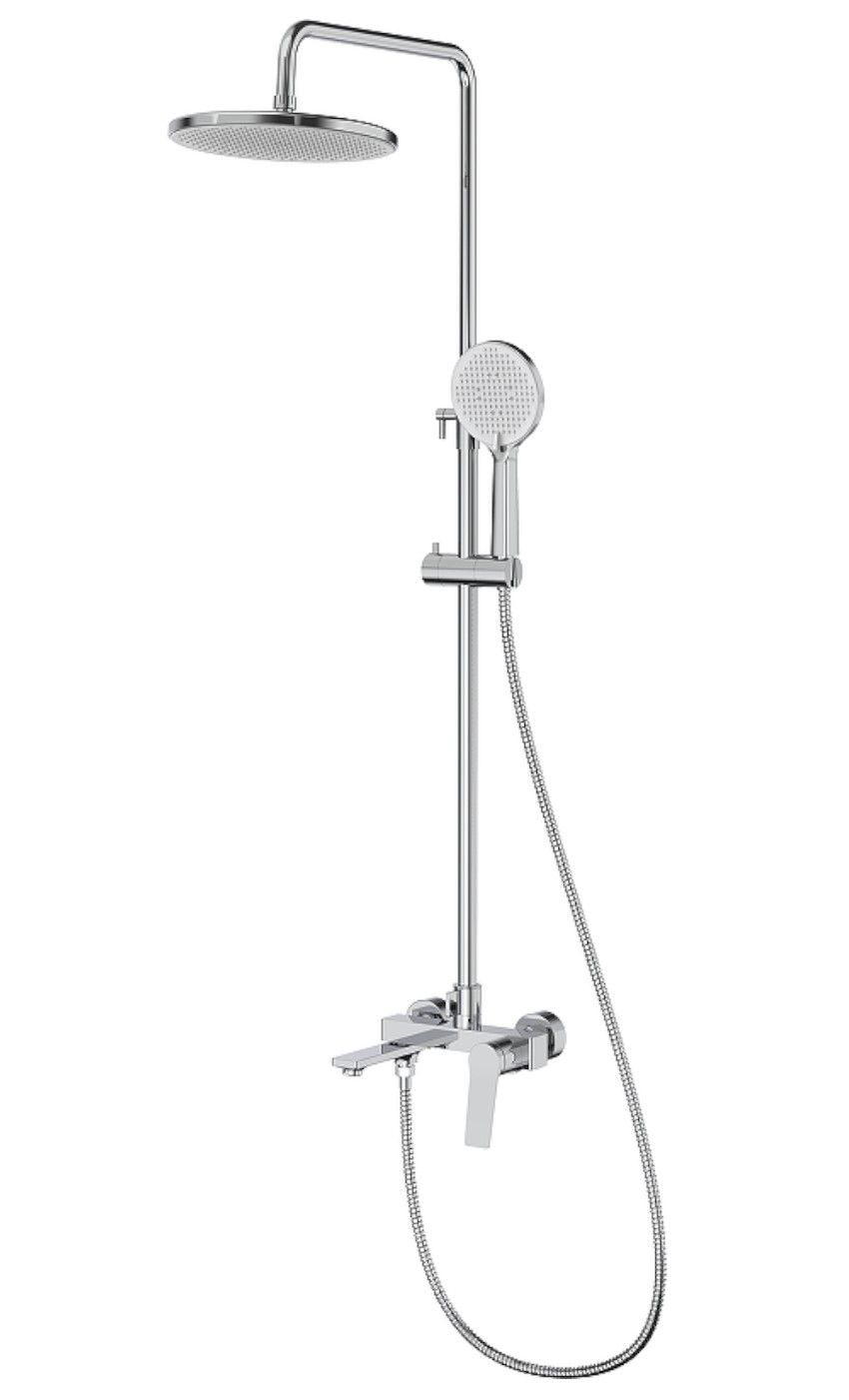 Душевая система Splenka S04.24. Цвет: хром. Материал: латунь. Управление: однорычажное. Механизм: керамический картридж. Излив: поворотный. Аэратор. Стандарт подводки: G 1/2. Форма верхнего душа: круглая. Диаметр верхнего душа: 250 мм. Количество режимов струи ручного душа: 3. Регулируемая душевая штанга: 820-1475 мм. Монтаж: на стену.