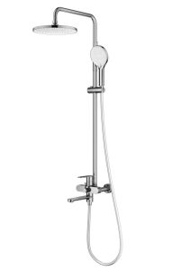 Душевая система Splenka S222.24.05, сатин. Душевая система подходит для ванны и душа. Излив у системы имеет функцию переключения режима подачи воды. Верхний душ имеет круглую форму, из авс-пластика. Душевая лейка - 3 режима. Верхний душ - ∅250мм.