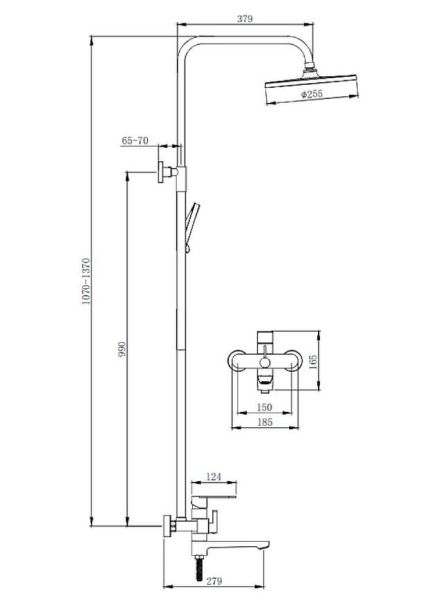 Душевая система Splenka S222.24.09, графит. Душевая система подходит для ванны и душа. Излив у системы имеет функцию переключения режима подачи воды. Верхний душ имеет круглую форму, из авс-пластика. Душевая лейка - 3 режима. Верхний душ - ∅250мм.
