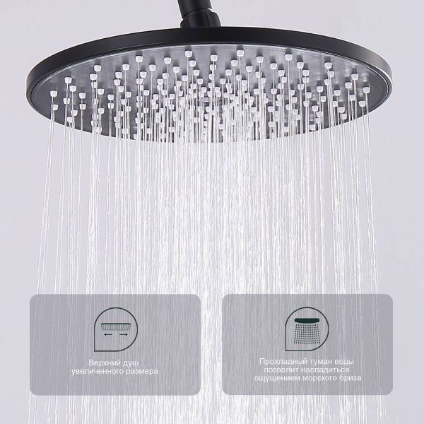 Душевая система Splenka S53.24.06, черный. Душевая система подходит для ванны и душа. Верхний душ имеет круглую форму размером 22 см. Ручная лейка у системы 3-х режимная. Лейки изготовлены из авс-пластика. Изделие выполнено в черном цвете, корпус латунный. Гарантия 5 лет.