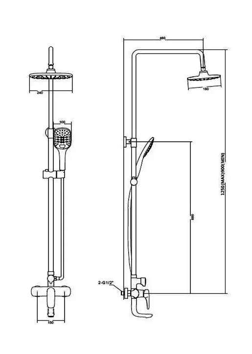 Душевой гарнитур нержавеющая сталь, латунный смеситель, верхний и ручной душ, с ИЗЛИВОМ