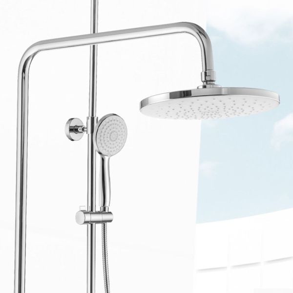 Тропический душ. Верхний душ с функцией экономии воды, расход 14 л/мин - 220 мм.Система подмеса воздуха Air-in, металл. Латунный узел регулировки наклона. Латунные трубки с возможностью регулировки высоты.Ручной душ 3 режима - 120 мм. 3D-эффект. Мыльница. Металлический шланг 1,5 и 0,6 мм. для подключения к любому смесителю, с системой против скручивания.Латунный дивертер.