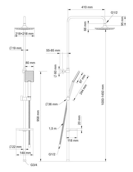 Душевая стойка Swedbe Calypso 5064 без смесителя хром