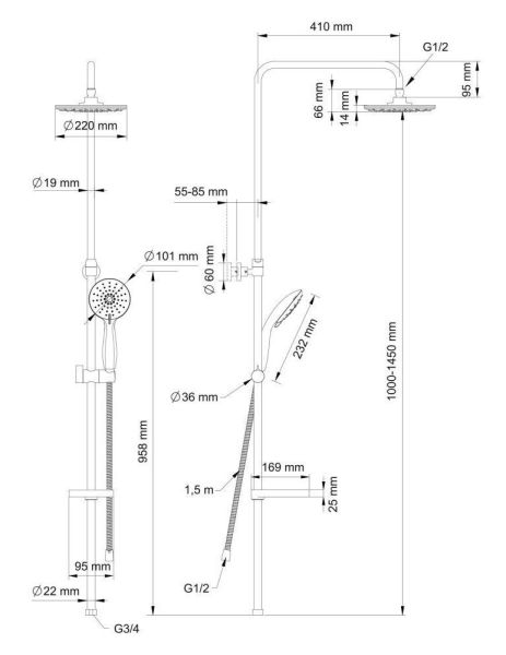 - ручной душ, с трехрежимной лейкой;