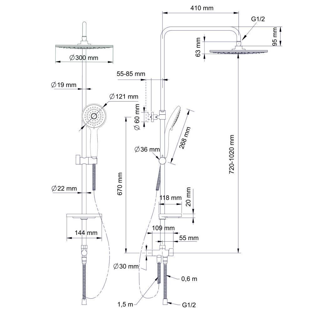 Размер верхнего душа, см:30