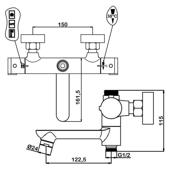 Семейный душ с термостатическим смесителем для ванны Swedbe Hermes 5116B ПРЕИМУЩЕСТВА:- керамическая кран-букса; - излив/дивертер (переключатель);