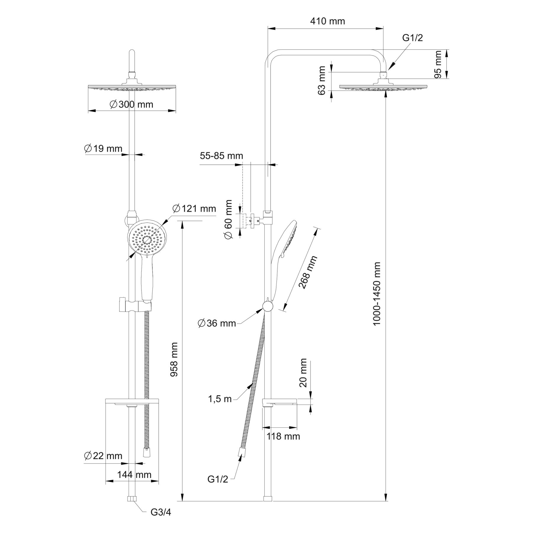 Семейный душ с термостатическим смесителем для душа Swedbe Hermes 9091G1