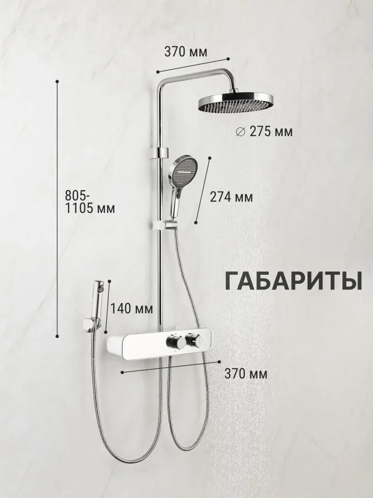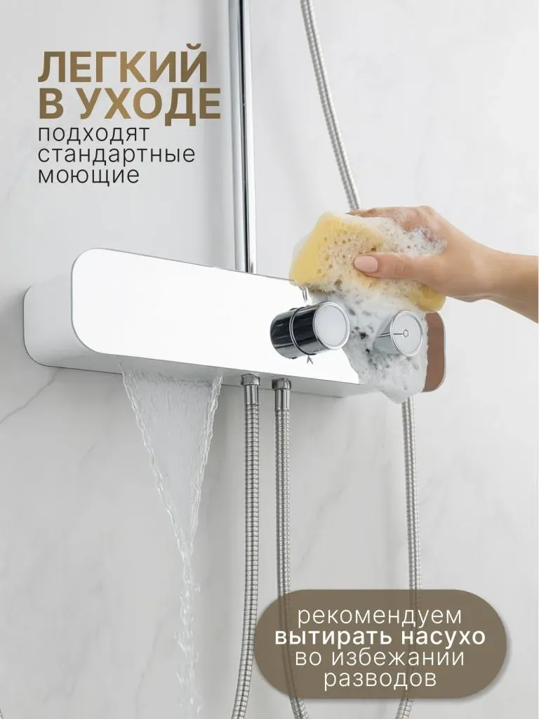Душевой комплект содержит все необходимое для монтажа. Кроме того, наша душевая стойка с дисплеем и подсветкой имеет простой и быстрый монтаж, благодаря чему вы сможете установить ее самостоятельно без привлечения специалистов. Это позволит сэкономить время и деньги, а также получить удовольствие от процесса создания своего уютного уголка в ванной комнате.