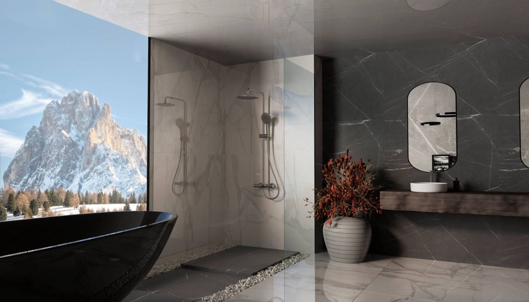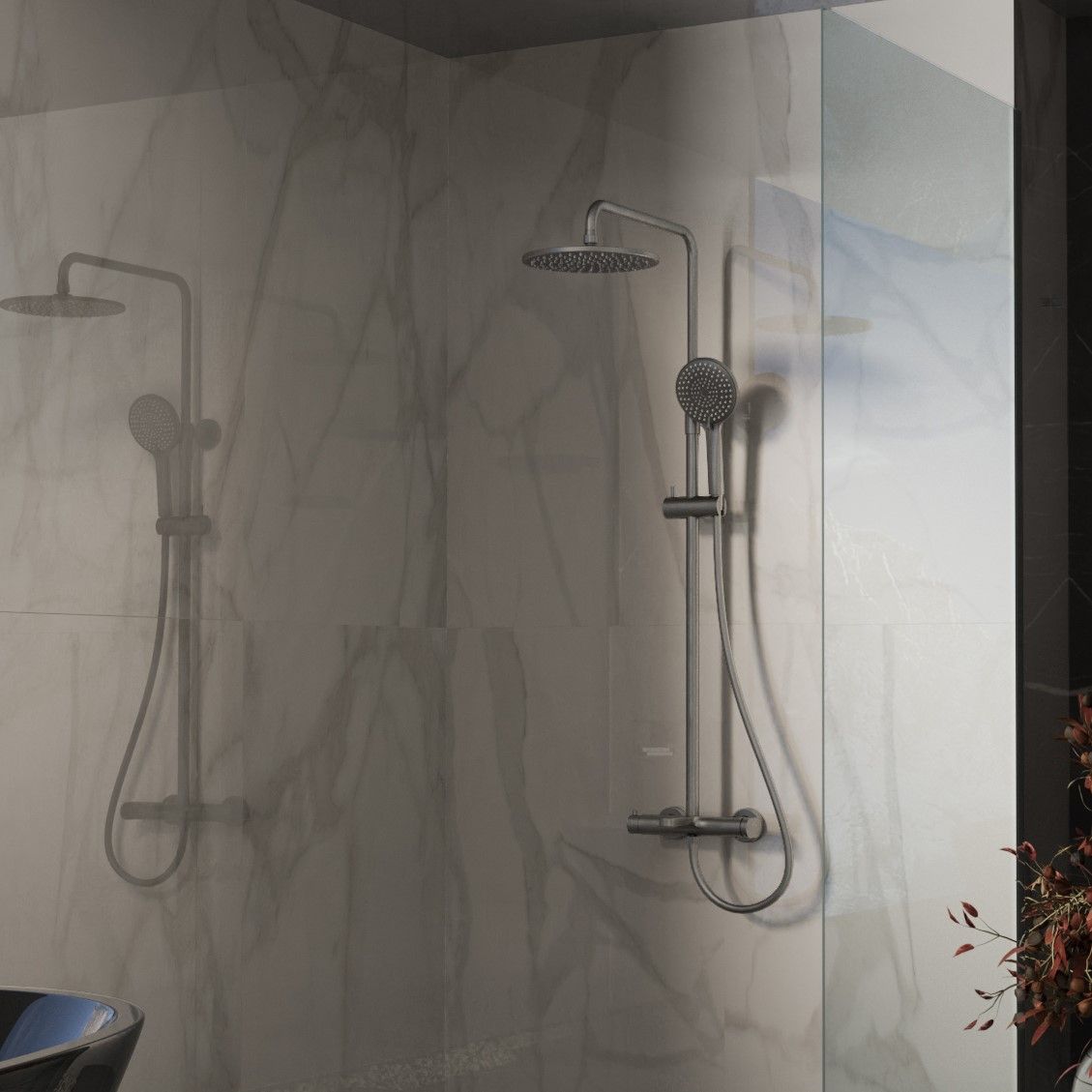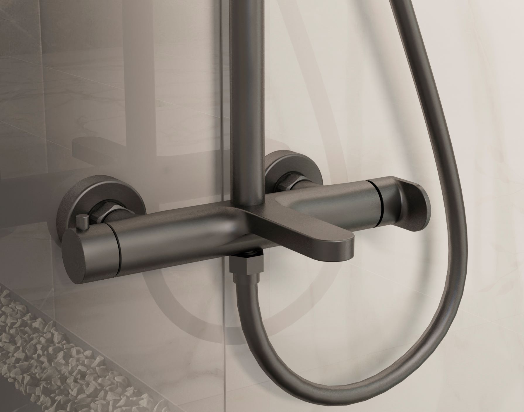 Душевая стойка Vincea Rondo VSFS-1R1GM, вороненая сталь