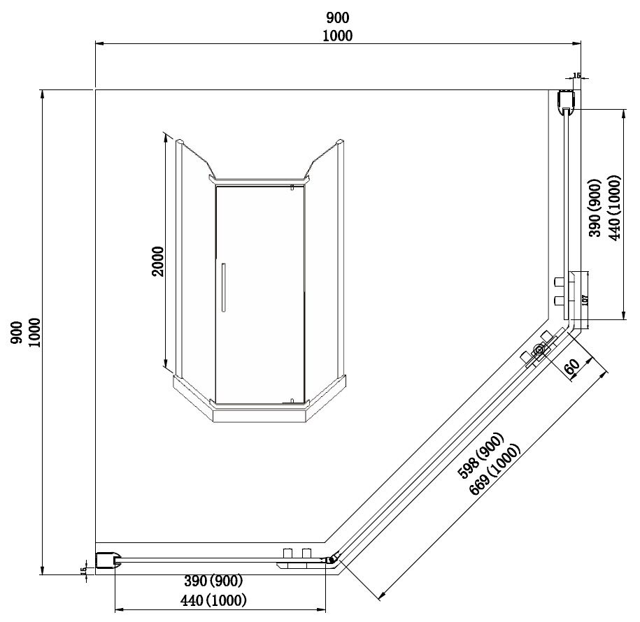 Душевое ограждение AZARIO EDMONTON AZ-NNC3231-1 900 BLACK