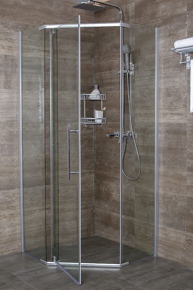 • Дверные ручки выполнены из качественных материалов. Обладают важными качествами: удобством в использовании, элегантностью и долговечностью. • Распашная система открывания дверей. Нижнеопорные петли исключают проседание дверей в процессе эксплуатации. • Алюминиевый профиль обладает высокими антикоррозийными свойствами. Матовая поверхность профиля придает ограждениям привлекательный внешний вид. • Магнитная лента плотно фиксирует стеклянные двери в закрытом положении, не давая попадать воде на пол и стены. • Силиконовый профиль служит для уплотнения зазора между полом и стеклом. ПОДДОН НЕ ВХОДИТ В СТАНДАРТНУЮ КОМПЛЕКТАЦИЮ ИЗДЕЛИЯ И ПРИОБРЕТАЕТСЯ ОТДЕЛЬНО. РАЗМЕР И ФОРМА ПОДДОНА ДОЛЖНЫ СООТВЕТСТВОВАТЬ РАЗМЕРУ И ФОРМЕ ОГРАЖДЕНИЯ.